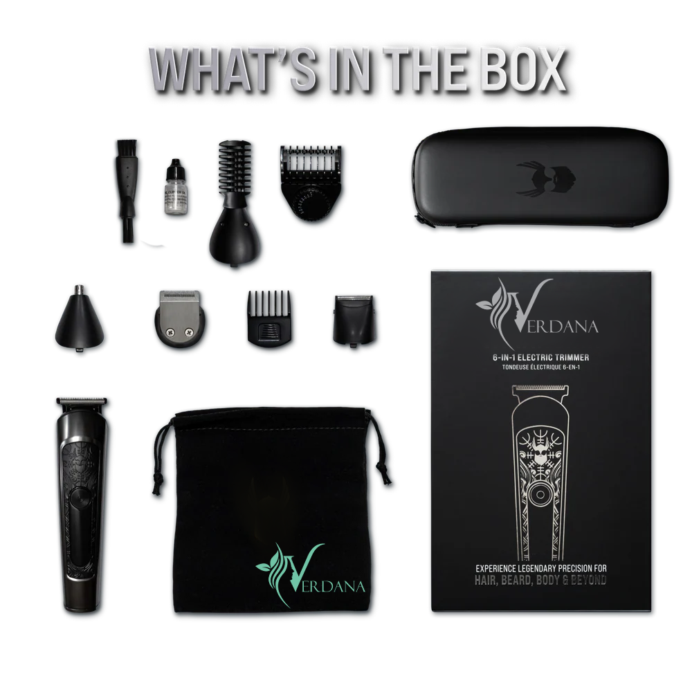 Unleash next-level grooming with the Verdana Men's Grooming Kit, the ultimate all-in-one kit for precision and power. Featuring the high-performance cordless trimmer itself with adjustable length settings, it comes complete with multiple guide combs for perfect fades and trims, a cleaning brush to keep blades sharp, and a sleek storage pouch for travel or daily organization. Durable, versatile, and built for warriors who demand control and style, this trimmer set transforms your grooming routine into a ritual of confidence. No gimmicks—just precision trimming that gets the job done. Whether it's your beard, chest, or below the belt.
