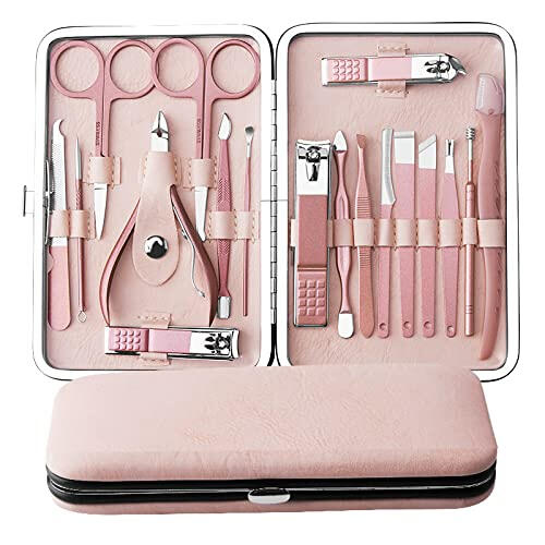 Elevate your self-care routine with the 18-in-1 Verdana Personal Care Grooming Set—a complete grooming kit designed for hands, feet, face, and more. Crafted from premium stainless steel and neatly housed in a sleek leather case, it includes everything from nail clippers, cuticle trimmers, files, and pedicure knives to eyebrow scissors, tweezers, ear picks, and acne pins. Durable, precise, and travel-friendly, this all-in-one set keeps you perfectly groomed at home or on the go—luxury, convenience, and professional quality in one elegant kit.