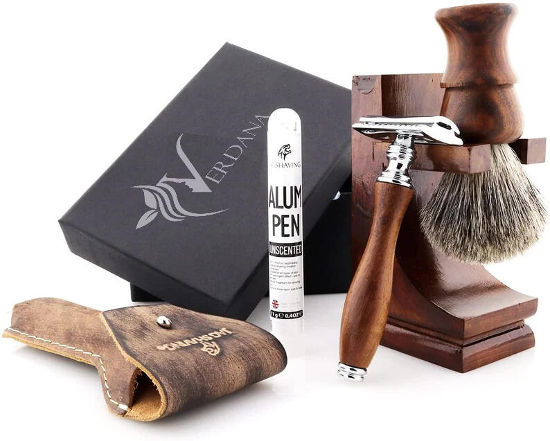 Rediscover the ritual of classic grooming with the Verdana Men’s Shaving Set—a complete set designed for a smooth, luxurious shave every time. This premium kit includes a precision-crafted double-edge safety razor for a close, comfortable shave, a pure badger hair shaving brush that whips up a rich lather, a sturdy stainless steel shaving bowl for effortless prep, and a sleek razor-and-brush stand to keep everything organized and elegant on your countertop. Built to last and crafted for style, it’s the ultimate upgrade for any man who values tradition, quality, and refinement.