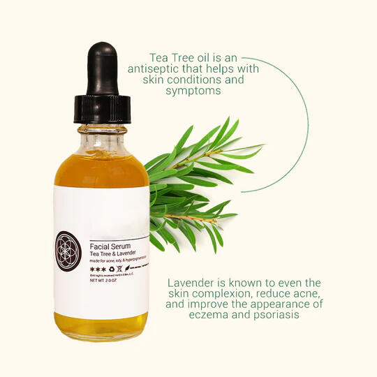 Soothe, clarify, and restore with the Tea Tree & Lavender Facial Serum. This lightweight, plant-powered serum blends purifying tea tree with calming lavender to help reduce breakouts, balance oil, and promote a clearer, more even complexion. Perfect for acne-prone or sensitive skin—gentle, effective, and naturally radiant.