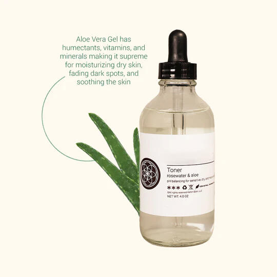 Refresh and restore your skin with the Rosewater & Aloe Toner. This gentle, plant-based formula combines soothing rosewater and hydrating aloe to balance your skin’s natural balance, tighten pores, and calm irritation—without drying you out. Perfect for all skin types, it preps your skin to absorb moisture and leaves you with a fresh, radiant glow.