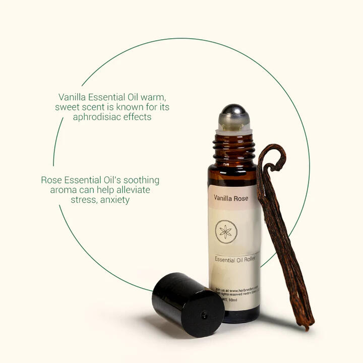 Fall in love with your self-care ritual with the Vanilla Rose Essential Oil Roller. The warm sweetness of vanilla meets the soft elegance of rose to create a soothing, sensual aroma that relaxes the mind and uplifts the spirit. Pocket-sized and all-natural, it’s your go-to for calm confidence and a touch of romance wherever you are.