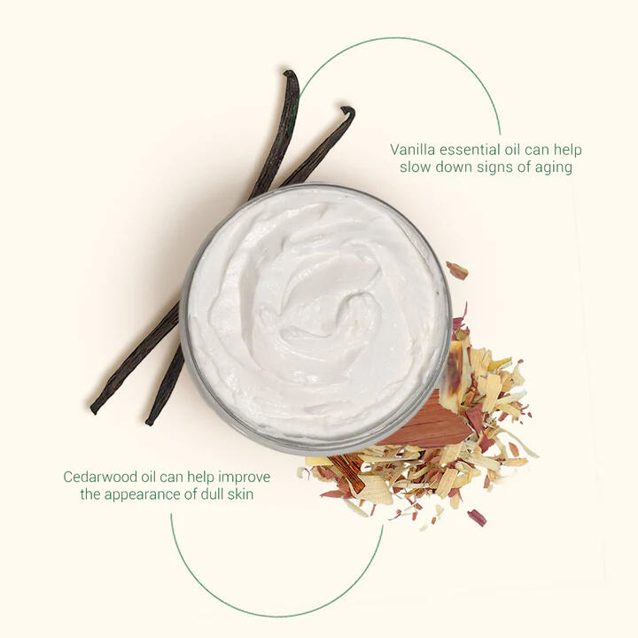 Wrap yourself in comfort with the Vanilla & Cedarwood Body Butter—a deeply hydrating, whipped blend that softens and nourishes while surrounding you with a warm, woodsy-sweet aroma. Vanilla soothes, cedarwood grounds, and together they transform daily moisturizing into a cozy, calming ritual for radiant, touchably soft skin.