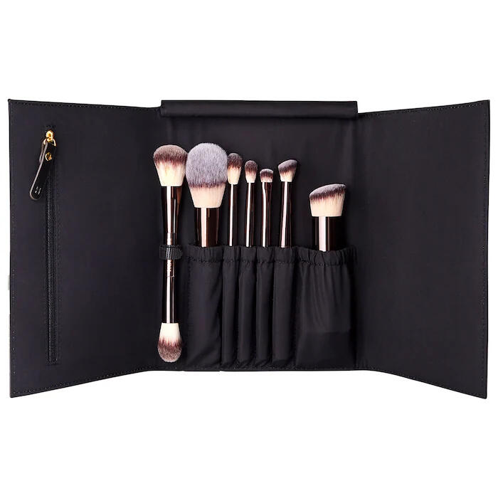 The Visagiste's Brushes are a masterfully crafted collection for the discerning beauty connoisseur. This ultra-luxe, travel-sized set features exquisitely soft vegan bristles and sleek, sculptural handles—designed to deliver flawless application with every stroke. From airbrushed skin to perfectly blended eyes, each brush is a statement of artistry, refinement, and conscious beauty.