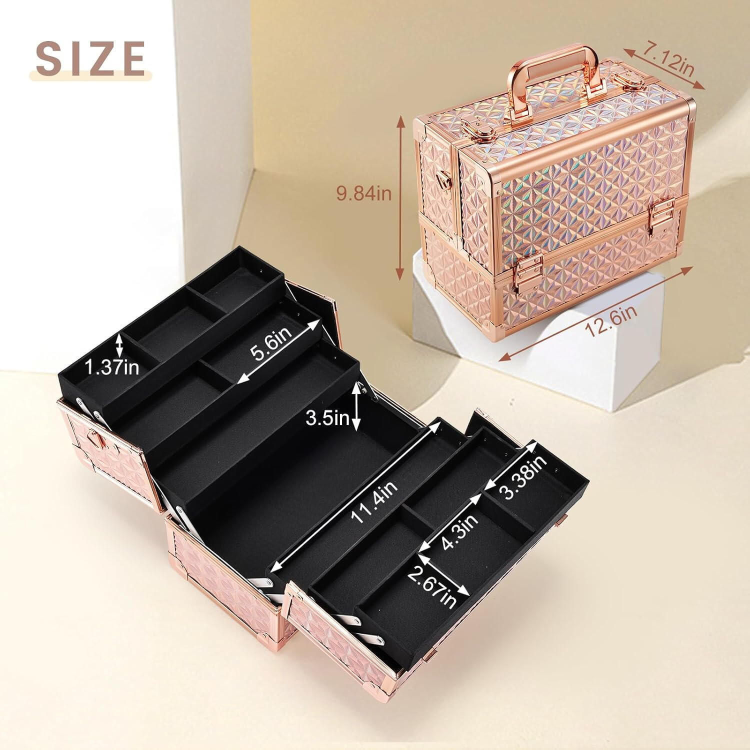 Ready to elevate your beauty game to the next level? The Verdana Makeup Arsenal Case is your ultimate backstage essential — designed for makeup artists, beauty enthusiasts, and anyone who demands perfect organization, maximum storage, and effortless style.With its rugged aluminum frame, multi-tiered compartments, and lockable latches, this case is built tough to protect your entire collection — from palettes and brushes to skincare and tools. The spacious design means you can carry every product you need, while staying impeccably organized and ready for any look, anywhere.