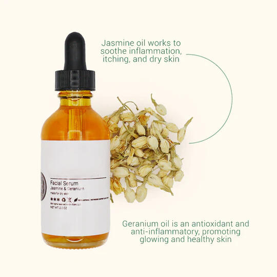 Elevate your glow with the Jasmine & Geranium Facial Serum. This luxurious blend of nourishing oils, jasmine, and geranium helps balance skin tone, boost elasticity, and deliver long-lasting hydration. Perfect for dull or mature skin, it leaves your complexion soft, radiant, and beautifully refreshed—naturally.