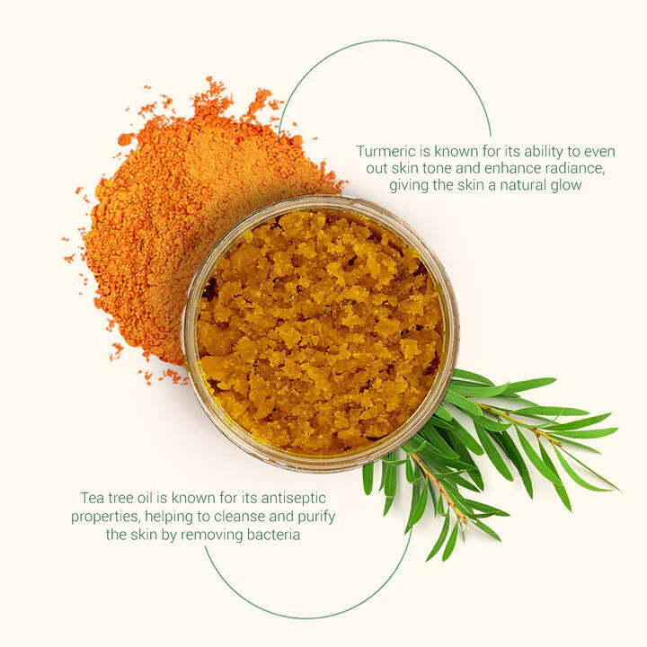 Purify and renew your skin with the Tea Tree & Turmeric Body Scrub. This all-natural exfoliating scrub blends detoxifying tea tree oil with anti-inflammatory turmeric to gently buff away dead skin, unclog pores, and reveal a smoother, brighter glow. Perfect for acne-prone or uneven skin—clean, clear, and naturally radiant.