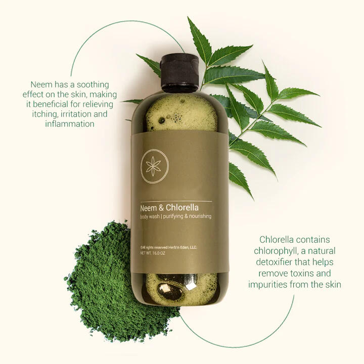 Detox and nourish your skin with the Neem & Chlorella Body Wash. Packed with antioxidant-rich chlorella and clarifying neem, this all-natural cleanser helps fight breakouts, soothe irritation, and promote a healthy, balanced glow. Gentle yet powerful—plant-based care your skin will love.