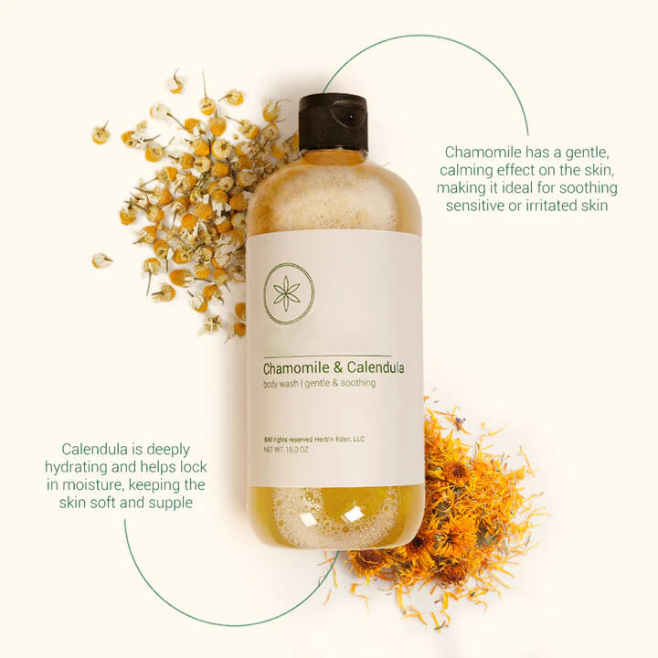 Soothe and nourish your skin with Chamomile & Calendula Body Wash—a gentle, plant-based cleanser crafted to calm irritation, lock in moisture, and leave your skin soft and balanced. Infused with the natural healing power of chamomile and calendula, it’s the perfect daily wash for sensitive or dry skin, free from harsh chemicals and full of botanical goodness.
